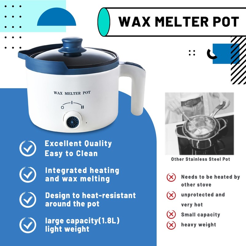 • {Wax Melter with Lid}: This electric wax melter comes with a glass lid, which is suitable for beginners and children to operate, and the ultra-plastic design around the pot ensures it is safe to touch during the entire heating process.