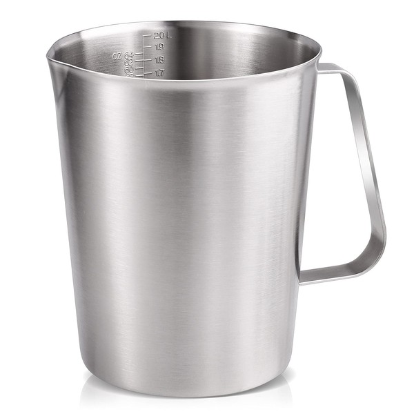 KSENDALO 64Ounces Stainless Measuring Cup (2.0 Liter) 304 Stainless Measuring Cup Stainless Pitcher with Marking with Handle, 8 Cup (2000ML)