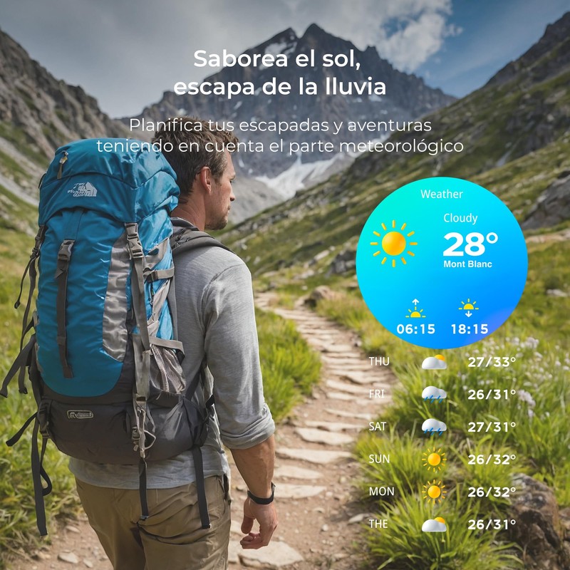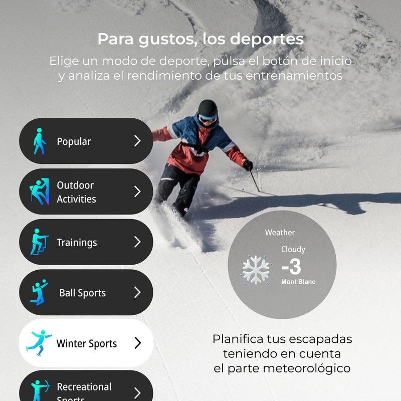 • Improve your health and performance: Monitor your health 24/7 with the smartwatch that measures your blood pressure, heart rate, blood oxygen, sleep, stress meter and menstrual cycle. In addition, it is a sports watch, because its modes allow you to analyze and record your workouts of all sports directly from your wrist.
