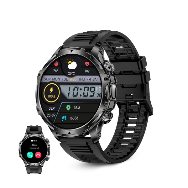 • Robust display and integrated flashlight: Enjoy a 4.85 cm (1.85") round AMOLED display with an impressive 360 x 360 resolution that offers vivid colors and sharp details and ensures a clear and attractive image in any environment. In addition, there is a flashlight on the sides of the watch, which allows you to illuminate routes and paths at night