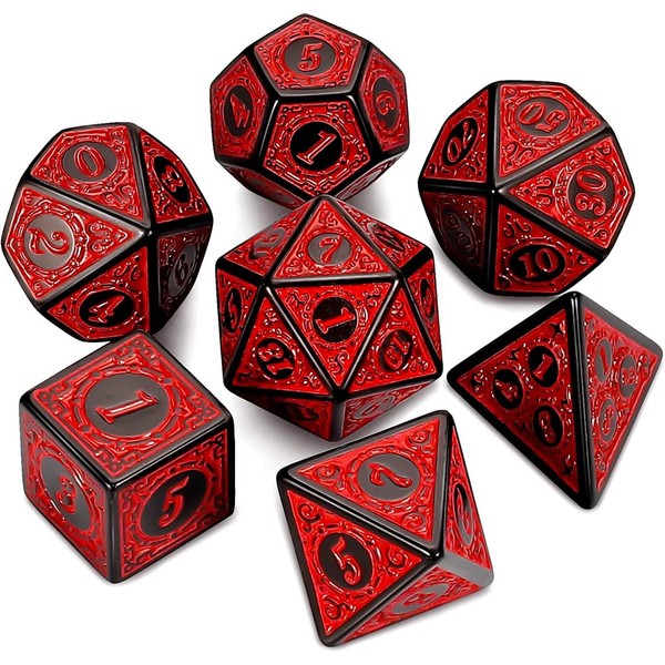 KSJEHW DND Dice Polyhedral Dice Set - 7 Pieces for Dungeon and Dragons MTG RPG D&D D20, D12, D10, D%, D8, D6, D4 (Red Engraving Pattern)