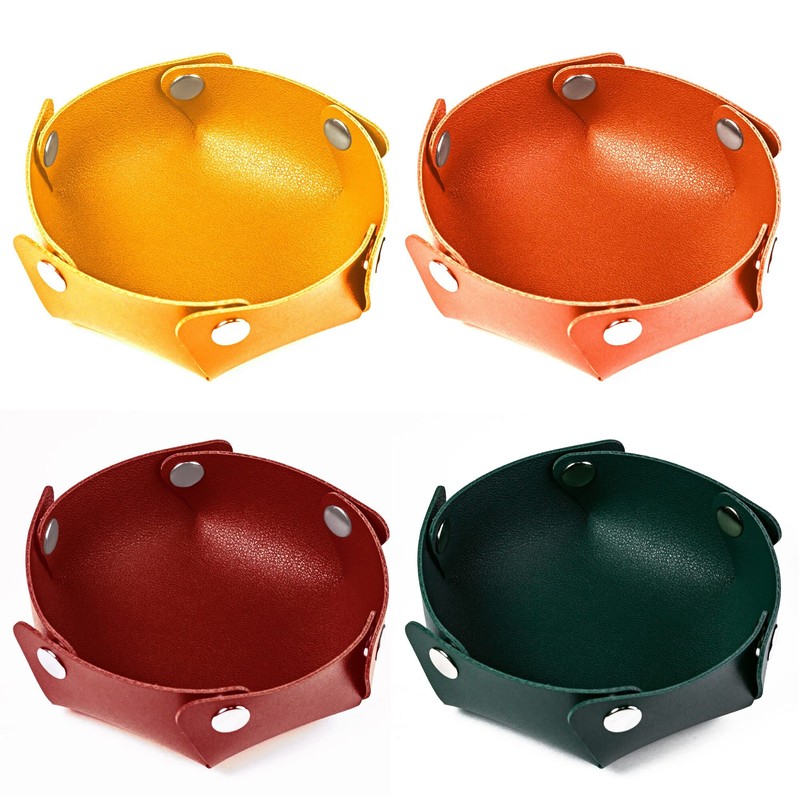 KSNDie 4 Pieces Small Dice Case & Dice Storage Box PU Leather Folding Round Dice Holder for Store Polyhedral Dice Set, Integrated Felt Dice Tray for Board Games