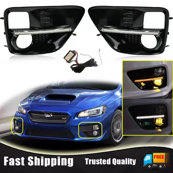 Fits 2015 2016 2017 Subaru WRX STILED 2PCS DRL Bumper Driving Fog Lights Lamp Bezel