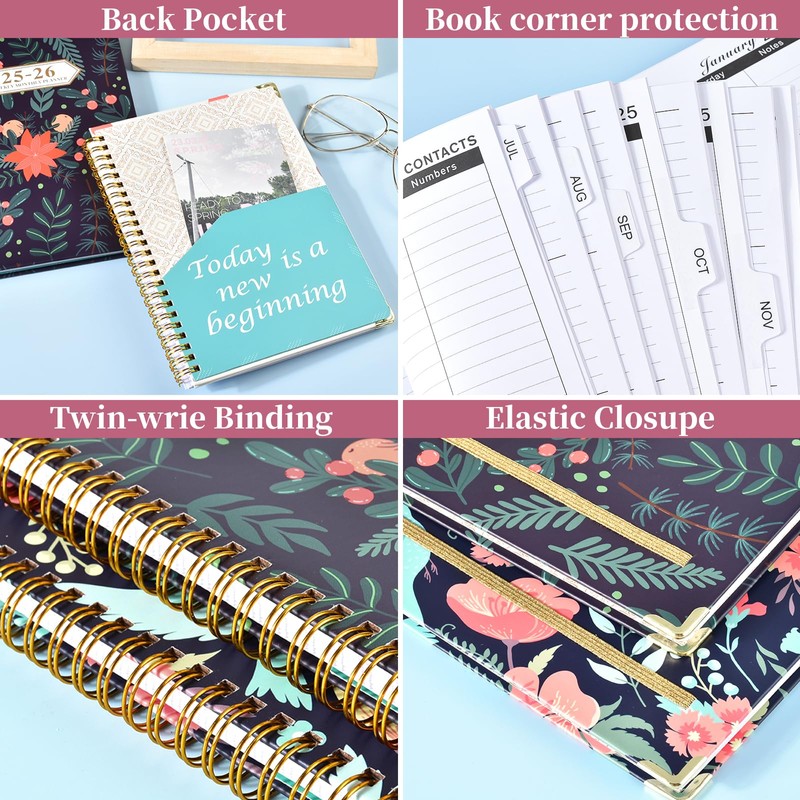 - Wonderful hard cover – Ksriylm calendar has a design of colourful flowers, blue flower, green leaf, orange yellow, purple flowers, 4 golden corners and a golden elastic band. Premium 100gsm premium paper minimizes ink leakage and provides a comfortable writing experience. The twin-wire binding allows easy turning and laying flat. Elastic closure to protect the inner pages, inner pocket for storing loose items such as tickets, cards, papers etc.