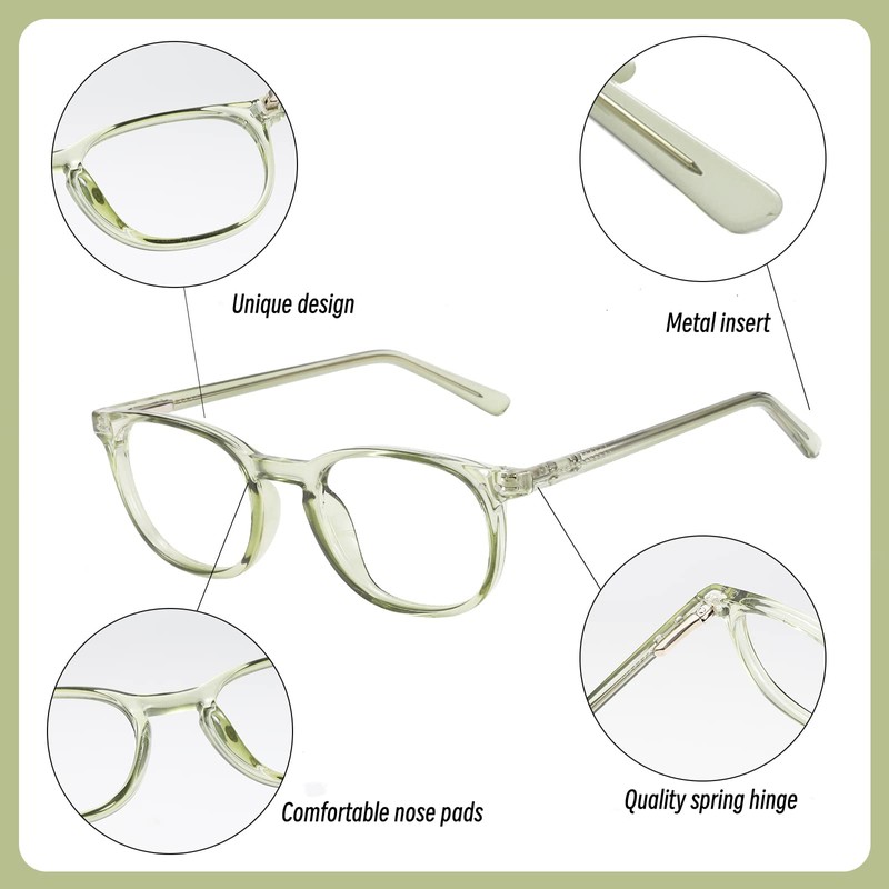 KSSESSE oval round blue light blocking reading glasses for adults.