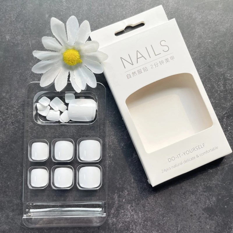 KSTBJN White Press-on Square Fake Toenails - Gloss 24 Fl Oz (Pack of 1), style8