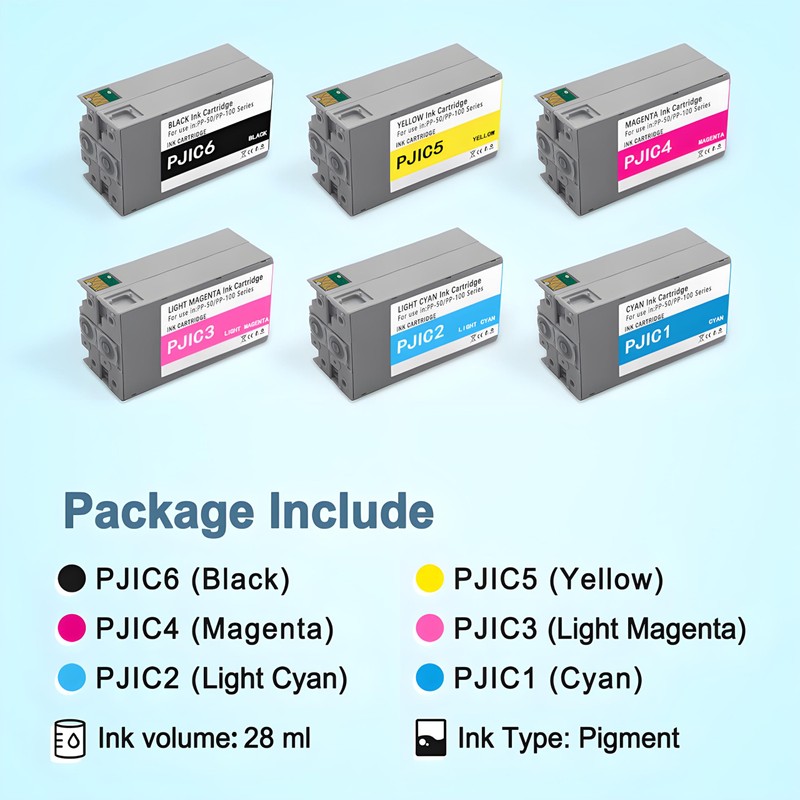 • Cartridges Model: PP-50 PP-100 ( PJIC1, PJIC2, PJIC3, PJIC4, PJIC5, PJIC6 ) ink cartridges set for Epson DiscProducer Printer