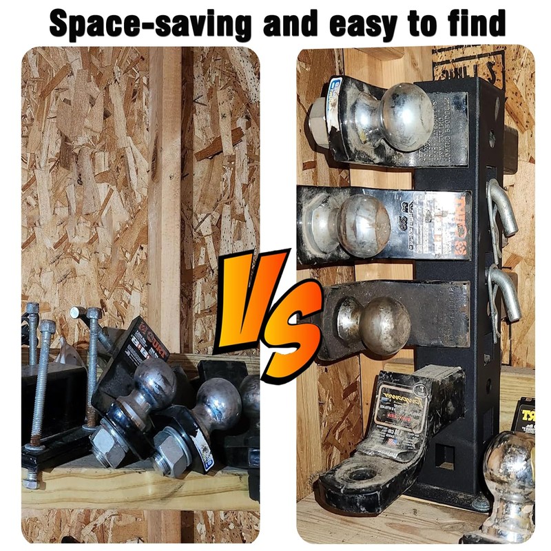 - Easy to install: The hitch storage is suitable for mounting on the ground (without the hitch pins and four mounting screws), and our trailer suspension storage comes with 8 very strong structural positions, ensuring that you store the trailer hook receiver without deformation and can be installed in a few minutes.