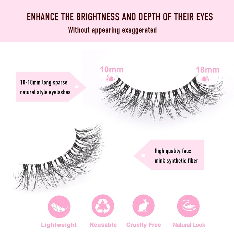 • Clear Band Lashes: Experience lightweight comfort with our wispy strip lashes. Made with lightweight materials, these natural eye lashes offer a comfortable wear throughout the day or night.