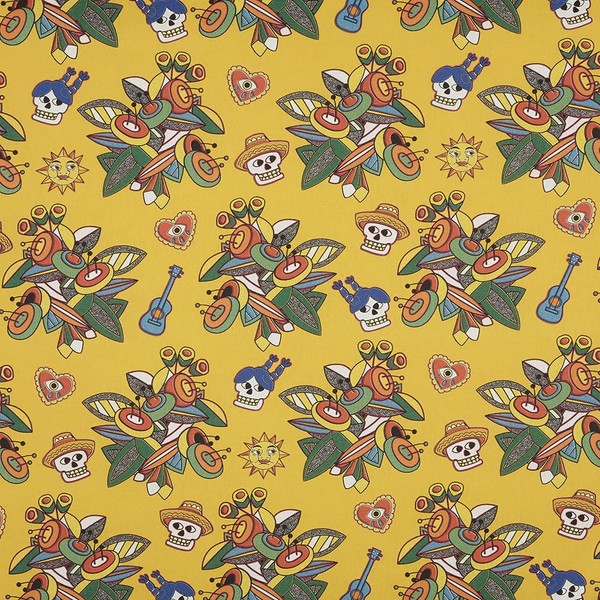 Kt KILOtela - Digital Printed Canvas Fabric Tablecloth Cushions Curtains Half Panama Cotton Patchwork 100cm Length x 140cm Width Psycodelia Regina - Orange - 1 Metre