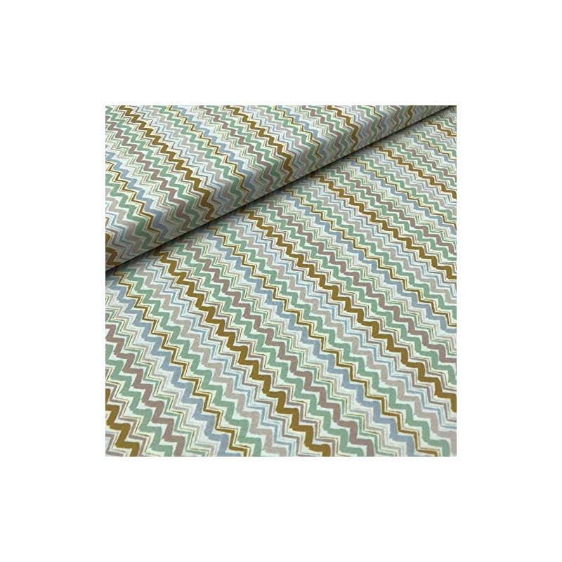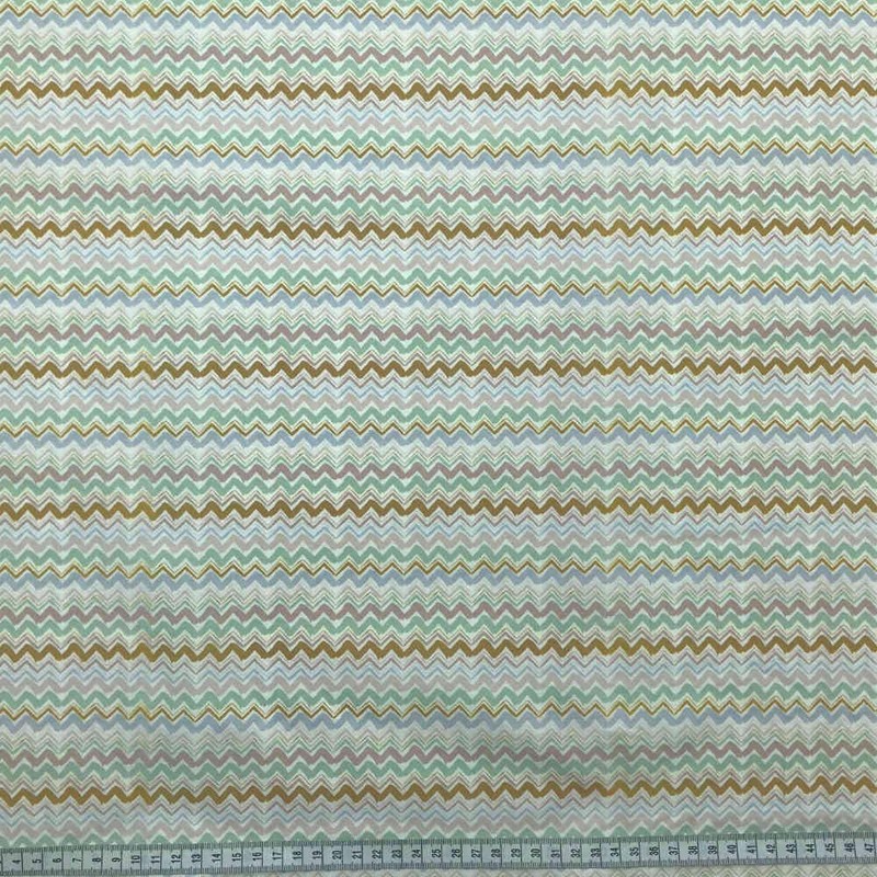 Kt KILOtela - Patchwork Fabric - Cotton Fabric - Piece: 100 cm Length x 140 cm Width | Zigzag - Pink, Mustard, Blue, Green, White