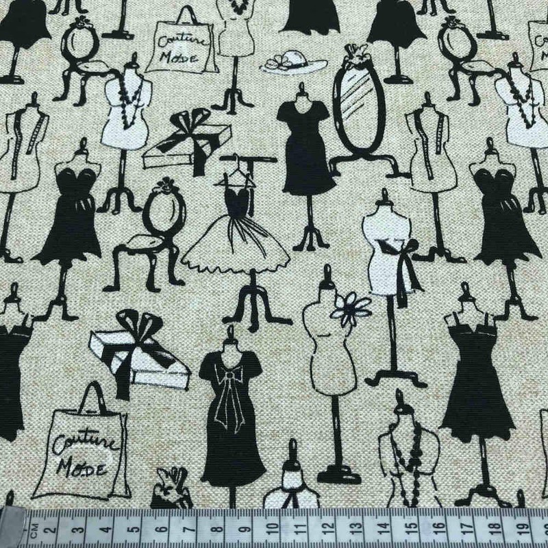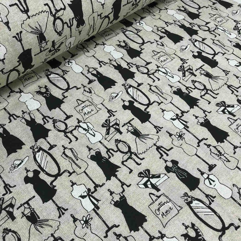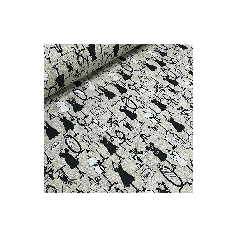 Kt KILOtela - Printed Canvas Fabric - Width 280 cm - Choice of Length 50 in 50 cm | Dressmaker's Dummy Dresses - Black, White, Beige