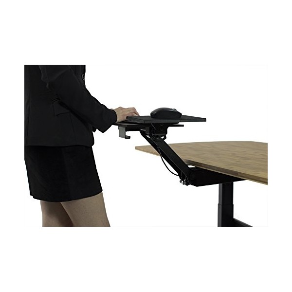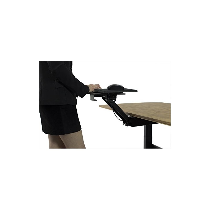 - standing desk keyboard tray: position keyboards up to 10” below your desk to provide proper height-separation between keyboards and monitors for optimal sitting or standing posture