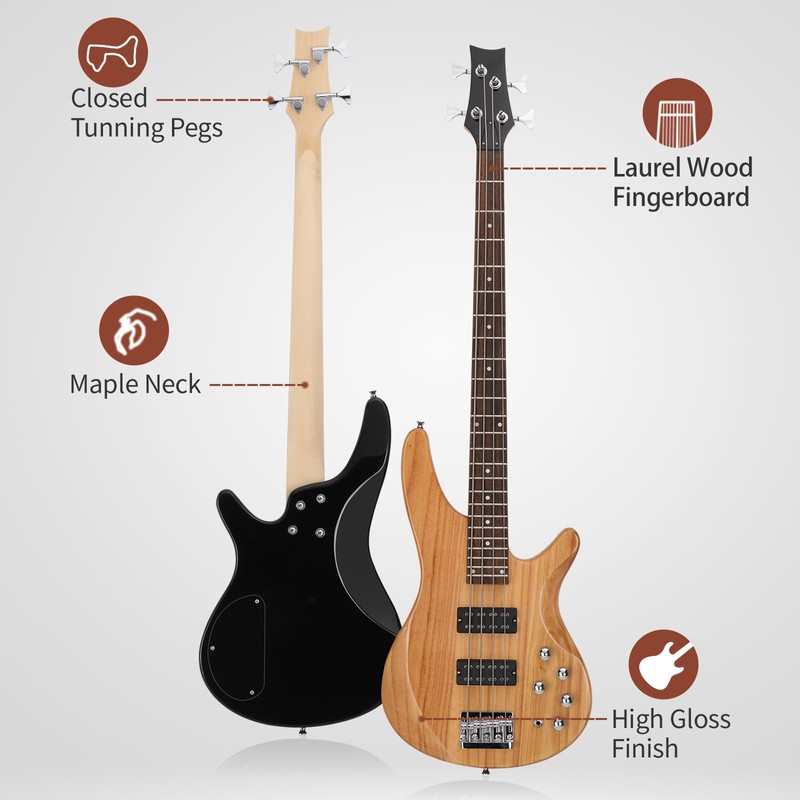 - H-H PICKUPS: Compare with ordinary single coils, the humbuckers with two coils would reject noise and interference using phase cancellation. With a round and full tone, the classic H-H pickup of the bass guitar also guarantees it's suitable for most musical styles, such as Blues and Pop and Heavy Metal
