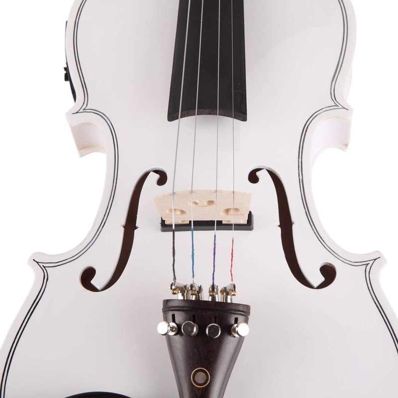 Ktaxon Acoustic Electric Violin, 4/4 Violin with EQ preamp and Ebony Accessories, Full-size Violin with AUX Cable, Shoulder Rest, Tuner, Rosin, Extra String and Cleaning Cloth (White)