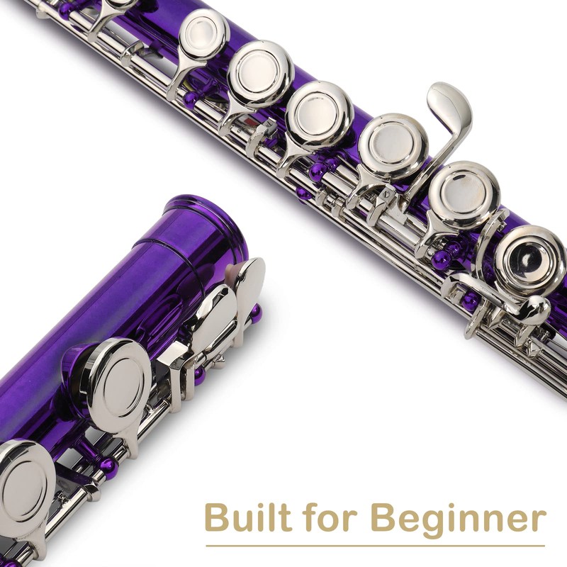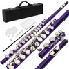 Ktaxon C Closed Hole Flute 16 Keys Flutes Kit for Students, Professionals & Beginner, Orchestra Musical Nickel Flute with Hard Case, Cleaning Rod, Cloth, Gloves (Purple)