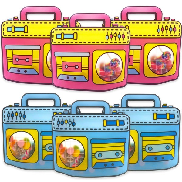 KTBANBANNEY 30 Pcs Radio Shape Party Favor Goodie Bags Small Gift Bags For Friends with Handle and Window For Birthday Baby Shower Retro 80s Theme Hip Hop Music Party Supplies Pink and Blue Treat Bag