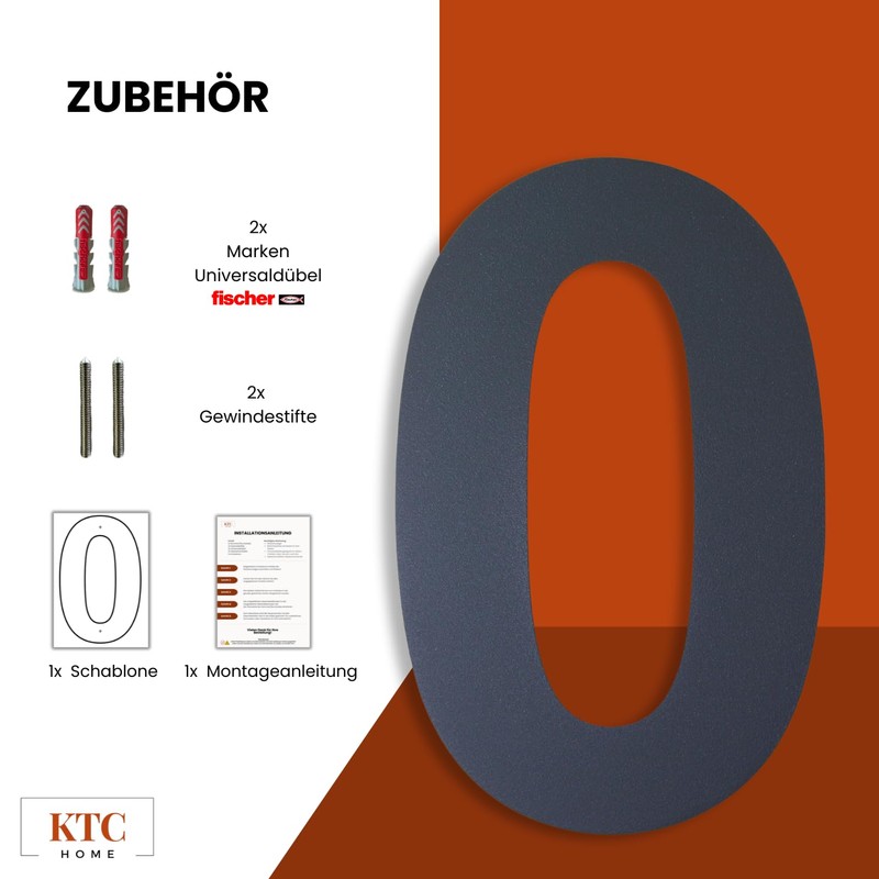 KTC-HOME - Premium House Number Anthracite Including Mounting Material - Powder Coated - Arial - Height 20 cm - RAL 7016 - Rustproof and Weatherproof House Number Plate - House Number 0 -