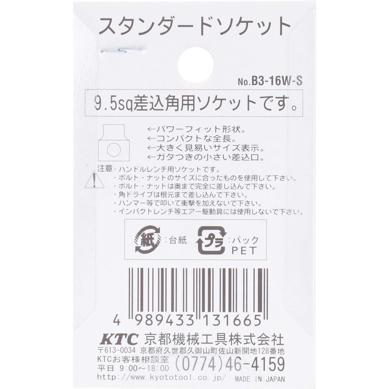KTC (ke-te-si-) Socket 9.5 mm (3 8/) B3 – W – Small