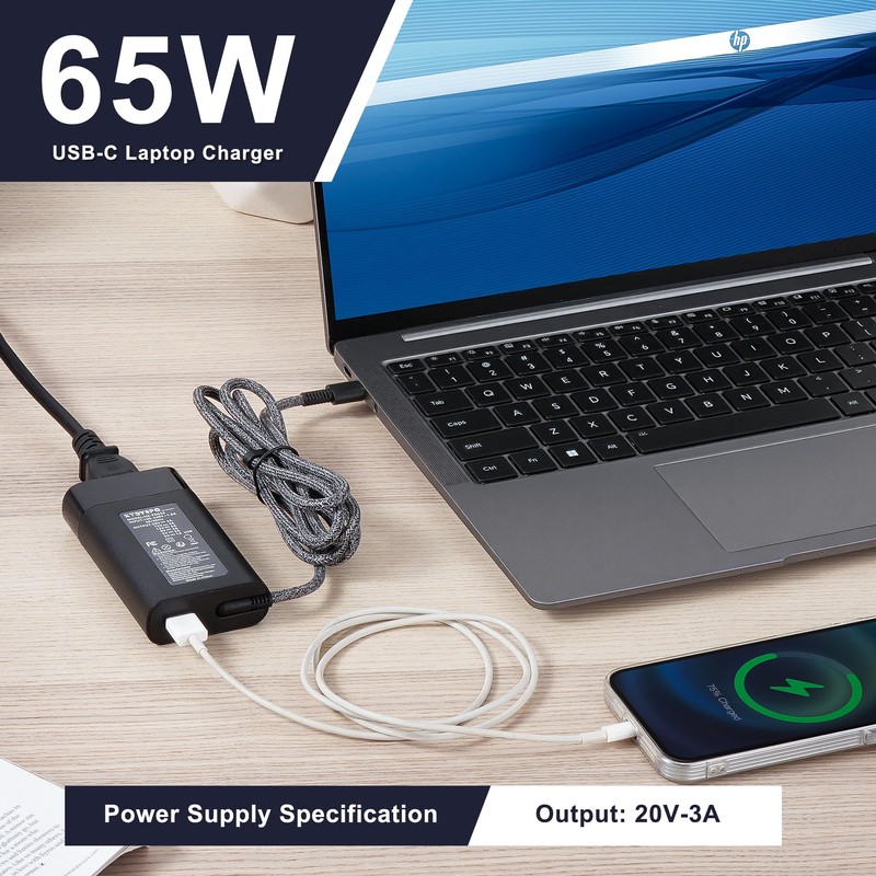 KTDYSPQ 65W USB-C charger is designed specifically for HP laptops, offering reliable power delivery across a range of models. Its compact and portable design makes it an excellent choice for travelers or professionals on the go. Equipped with advanced safety features, it ensures secure and efficient charging without compromising your laptop's performance.