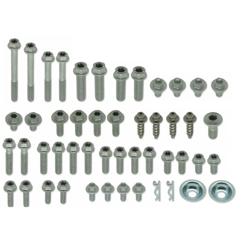 This kit includes the following KTM, Husqvarna, and GasGas equivalent part numbers: 0023060123, 0024060136, 0024060206, 0017060206, 0017060205, 0017060204, 0019080206S, 0019080206, 54610052000, 77304066150, 77304066050, 0025060126, 0025060166, 0025060206, 0025060256, 0025060306, 0025060406, 0025060456, 0025060506, 0025060556, 0025050206, 0025050166, 0014050123, 59001092050, 0025080306, 0025080406 All part numbers match factory spec bolts