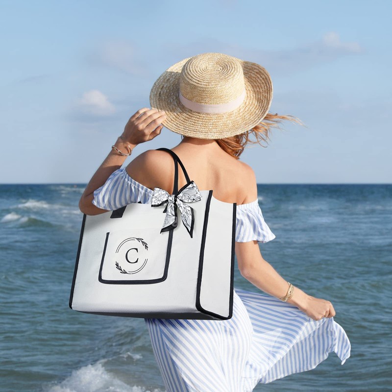 - 【Personalized Gifts for Women】The unique monogram and elegant silk scarf give this beach bag a high-end custom look. Monogram tote bag for women is the perfect gift on bridal shower, teachers appreciation, baby shower, 21st/30th/40th/50th/60th/70th birthday, Mother's Day appreciation, baby shower, 21st/30th/40th/50th/60th/70th birthday, Mother's Day