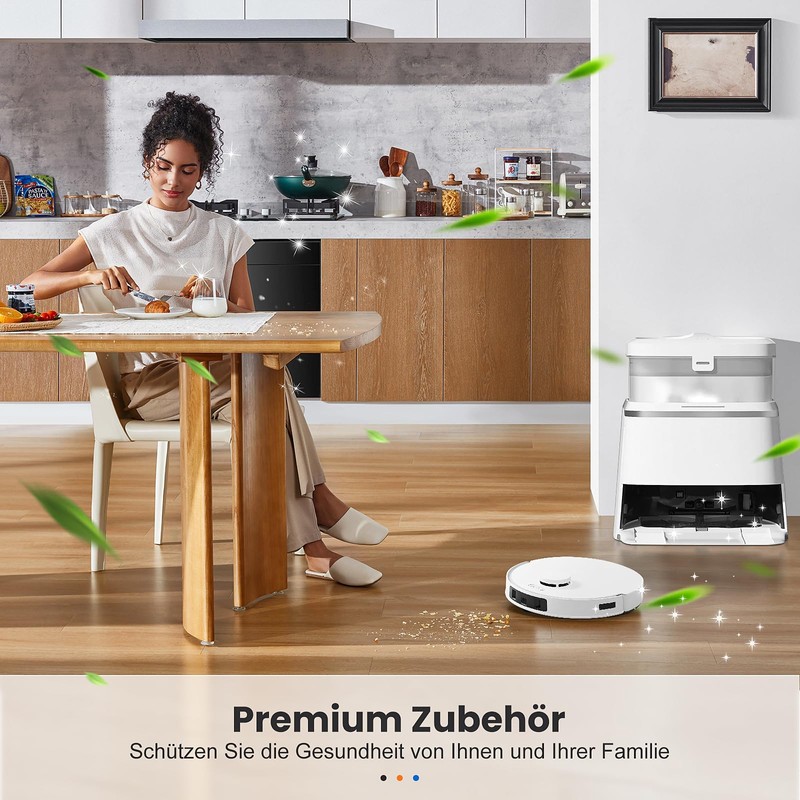 - ??Hauptb??rste??: Die V-f?rmige Hauptb??rste verhindert Staubaustritt und verf??gt ??ber dichte Borsten f??r hervorragende Reinigungskraft und ist f??r alle Bodenarten geeignet. Eine hochwertige Seitenb??rste kann versteckte Ecken effektiv reinigen.