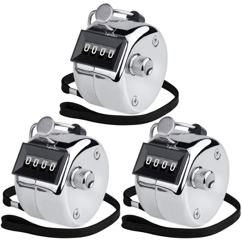 KTRIO Pack of 3 Metal Hand Tally Counter 4-Digit Tally Counters Mechanical Palm Counter Clicker Counter Handheld Pitch Click Counter Number Count for Row, People, Golf, Lap & Knitting, Silver