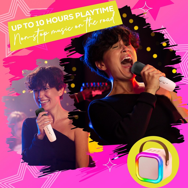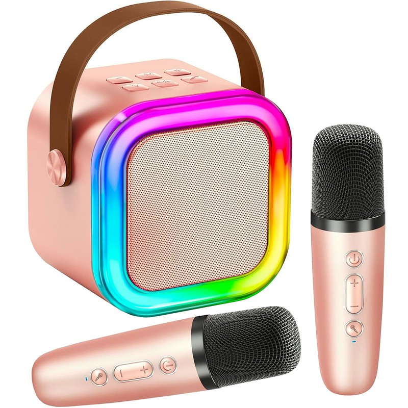 - Mini karaoke machine toy with built-in LED light show, can turn any room into a music hall, suitable for the whole family to play together, it has 6 interesting voice changer options