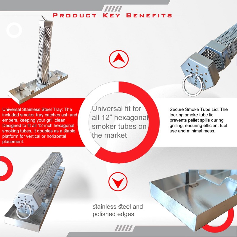 - Universal Stainless Steel Cleaning Tray – Includes a rust-resistant stainless steel tray to catch ash and embers, maintaining grill cleanliness. Compatible with all standard 12-inch hexagonal smoker tubes