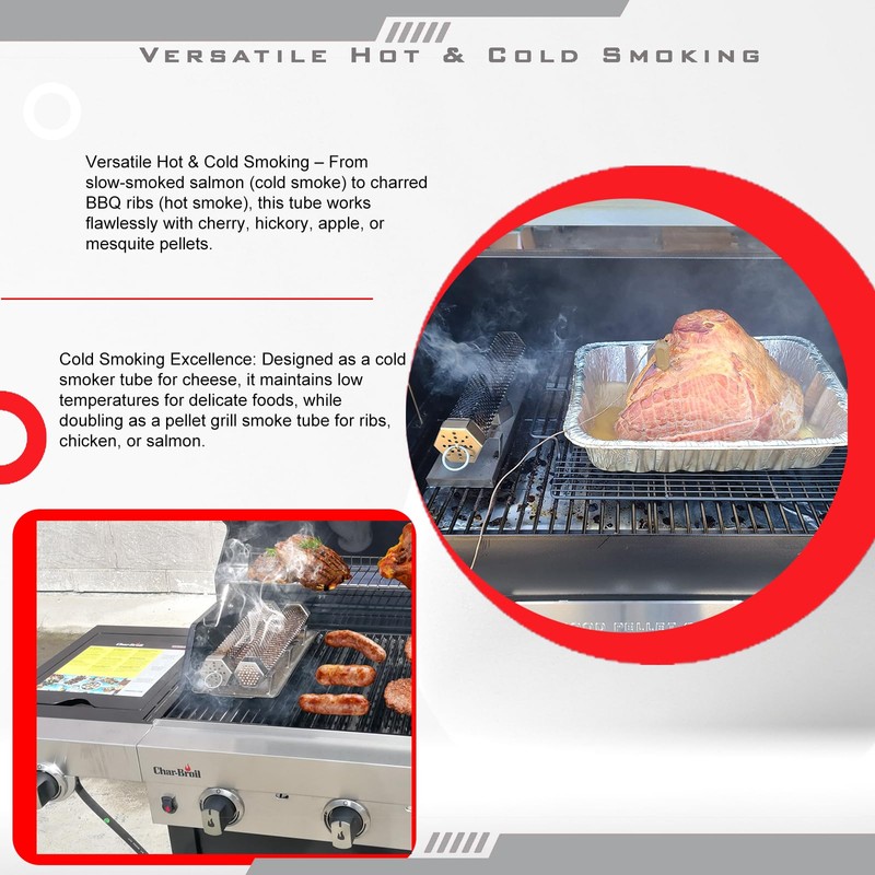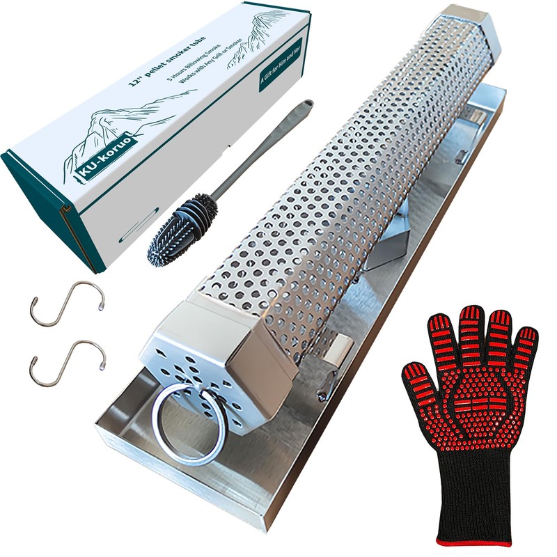 - Works with All Grills & Smokers – Designed for versatility, this smoker tube works flawlessly with gas, electric, charcoal grills, smokers. Pair with cherry, hickory, apple, or mesquite pellets for bold flavors