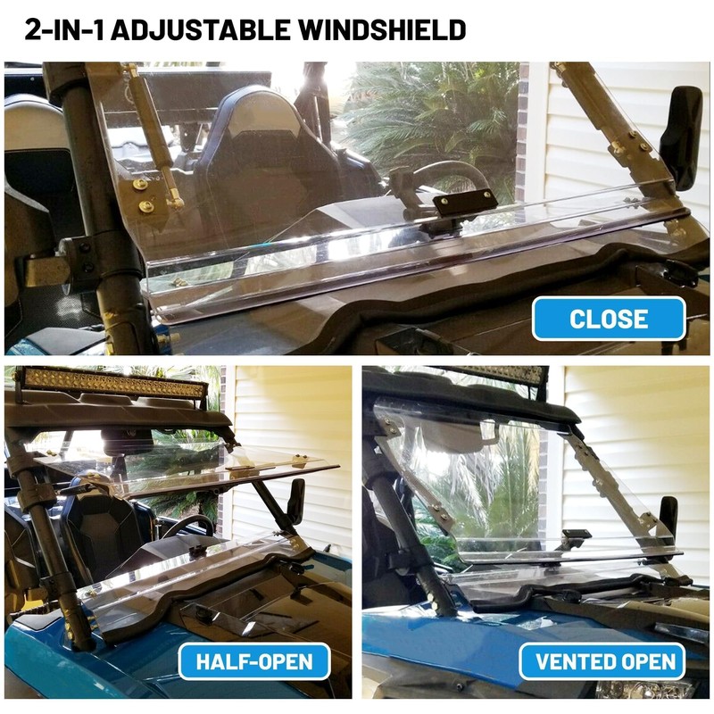KUAFU 2-IN-1 Front Flip Windshield Adjustable Compatible with 2014-2018 Polaris RZR XP 1000 / XP 4 1000 Heavy Duty Full Windscreen - Clear