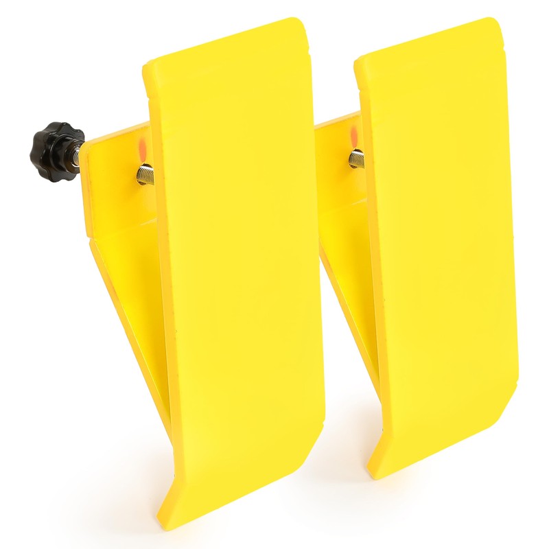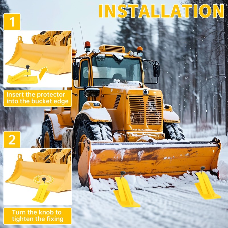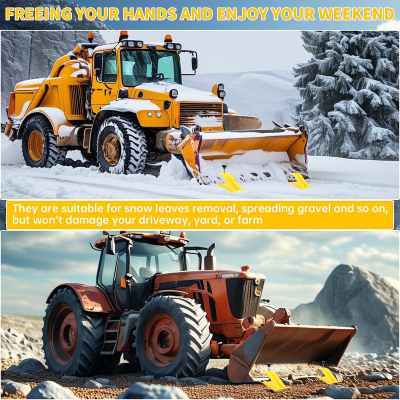 Fitment: These bucket Protector are universal. They compatible with most loaders, small in size, but when installed, it can turn your tractor into a powerful tool. Function: Maintain the bucket in a position that is slightly elevated above the ground, ensuring it remains steady and does not touch the surface below. They are suitable for snow leaves removal, spreading gravel and so on, but won't damage your driveway, yard, or farm. Freeing your hands and enjoy your weekend. Feature: Made of heavy steel which is high strength, withstand any harsh weather and condition, not easy to deform, also, the powder coated surface treatment adds the extra protection to it. This one adopts a striking yellow color, which is very beautiful. If you like other colors, we also recommend orange and green to meet your different needs. Package include: 1 pair of bucket protectors (total 2 pcs), we will provide you with mounting hardware but no instruction. Note: 10mm diameter screw ensure a safe installation. Installation: Install with some screws. Professional installation is highly recommended.