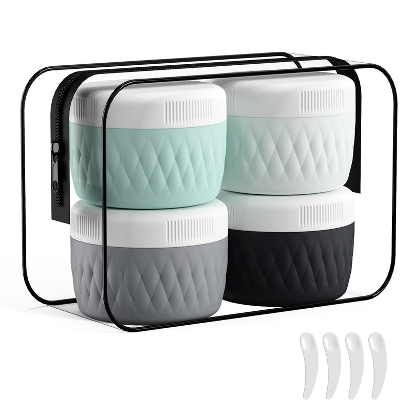- Travel Size Containers: The travel containers for toiletries includes 4 travel silicone cream jars are made, Different colors make it simple to identify which product is in each container.