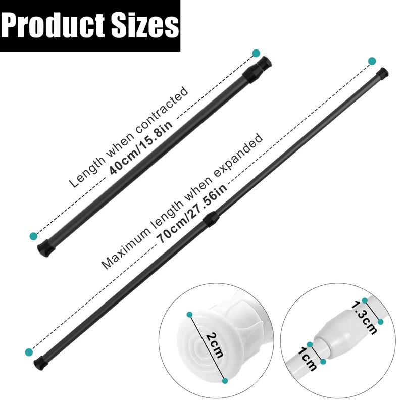 - 【Enough Tension】The diameter is 1.3 cm/0.5 inch, the non-slip rubber head is 2 cm/0.78 inch in diameter and the whole length is 40-70 cm/15.8-27.6 inch. Built-in spring, after rotating out the sliding door security bar, give enough tension to it to play a fixed role.