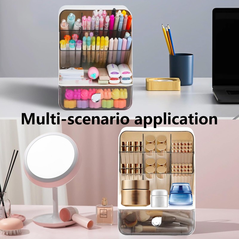 - 【45° Angled Design】The top two tiers of the organizer are separated and angled to make placing and accessing items quicker and more convenient. Ideal for storing office pens, makeup brushes, etc., the slanted design reduces clutter and makes accessing items easier.