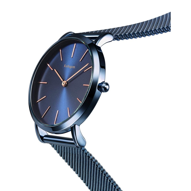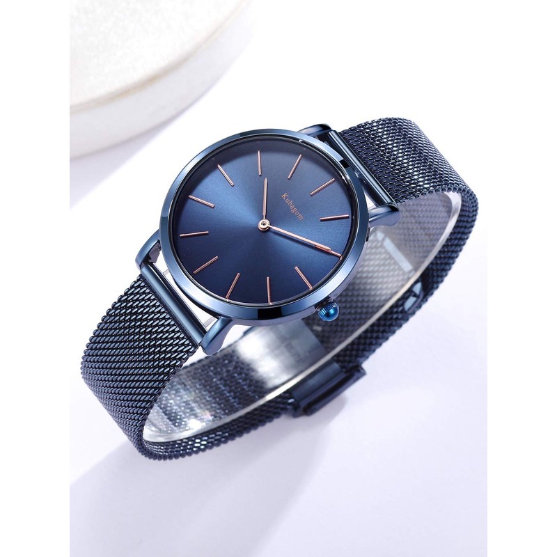 Kubagom Women's Watches Analogue Quartz Stainless Steel Waterproof Mesh Ultra Thin Set with Bangle, Blue surface, blue bracelet, blue bangle