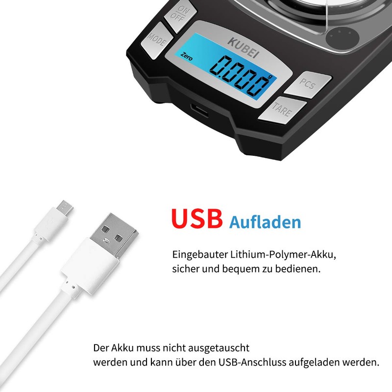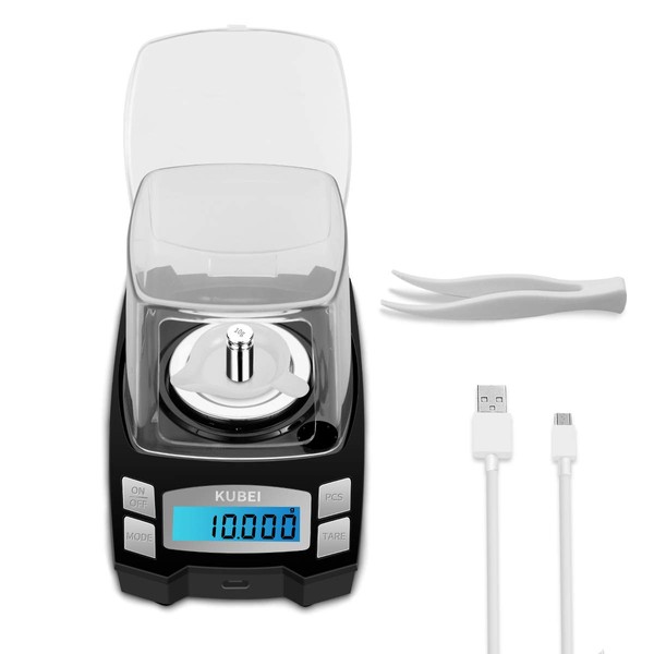 KUBEI 100g/0.001g USB Charging Milligram Scale, Mini High Precision Gram Scale, Digital Scale, Letter Scale, Gold Scale, Fine Scale, Jewellery Scales with Calibration Weights, Tweezers, Weighing Bowl