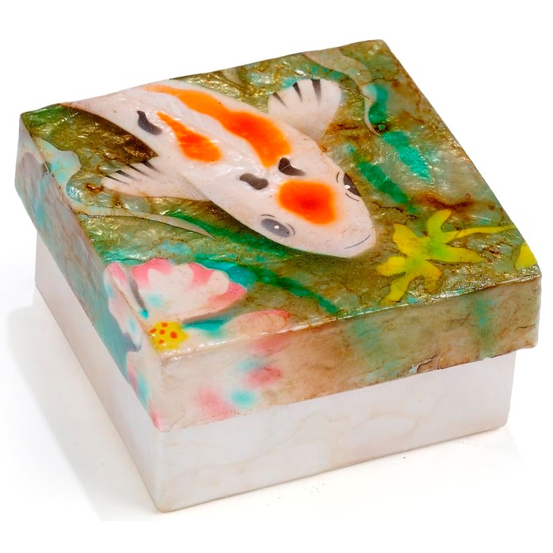 Kubla Craft Shell Decorative Storage Trinket Box 3"x3" - Koi Fish