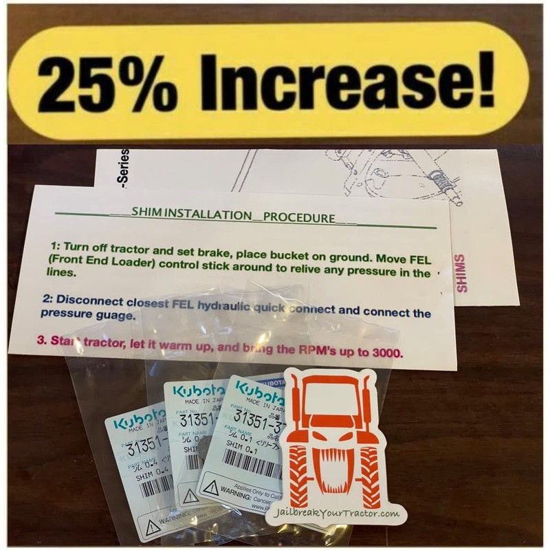 Kubota Boost Hydraulic Pressure JailBreakYourTractor Adjustment Kit Shims BX B L MX +25% Power