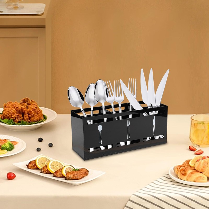 Küchenutensilienhalter Schwarz – 3-Fach Besteck Organizer aus Acryl, Behälter für Küchenutensilien mit offenem Design, Großes Fassungsvermögen Moderner Besteckkorb für Silberbesteck & Küchenwerkzeuge
