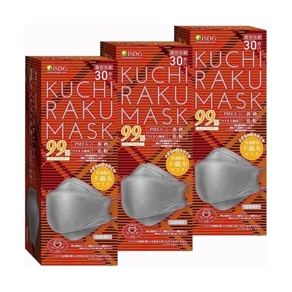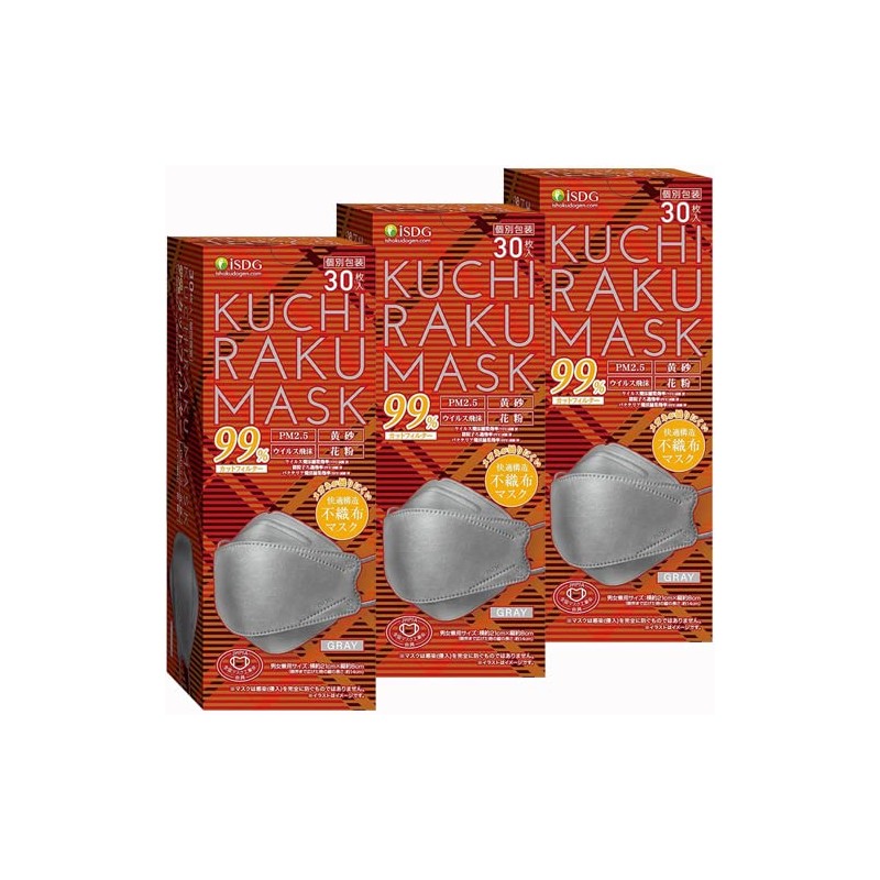 KUCHIRAKU MASK 4562355181118-3 Cutillaku Mask, Gray, 30 Sheets x 3 Boxes, Diamond Shape, Beak, Makeup Resistant (3 Boxes)