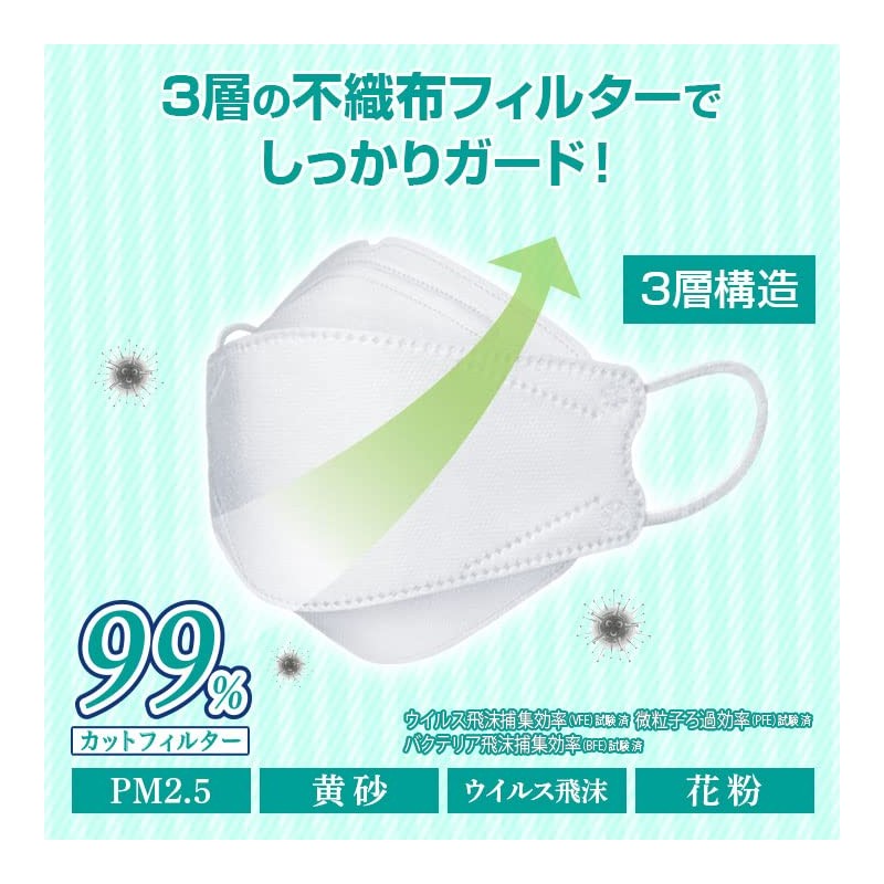 - 【3層フィルター】高機能不織布フィルターでウイルス飛まつ・花粉・黄砂・PM2.5をブロック。