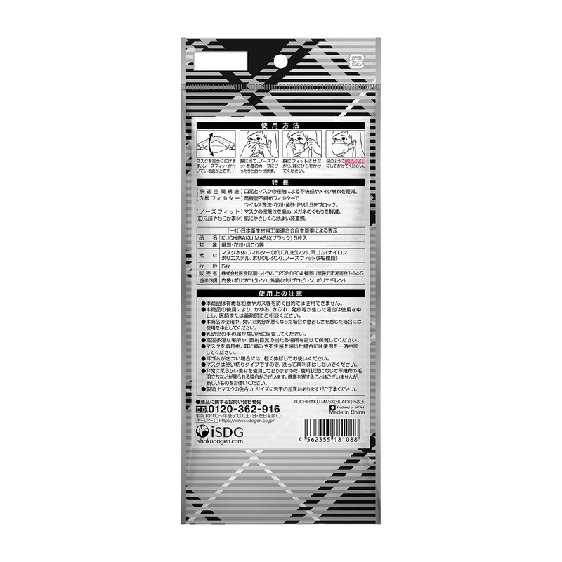 KUCHIRAKU MASK Black 5 Pieces Diamond Beak Shape Makeup Resistant