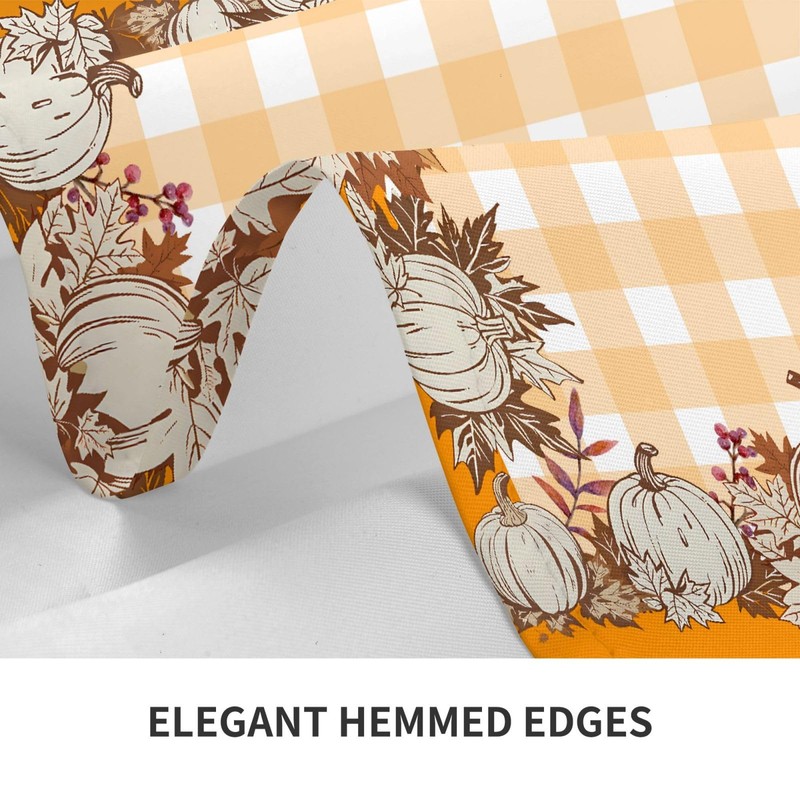 • SIZE: This fall checkered tablecloth measures 54 x 72 inches (137 x 183 cm), matching a table that can seat 4-6 people. To choose the ideal tablecloth, please measure the size of the table before purchasing