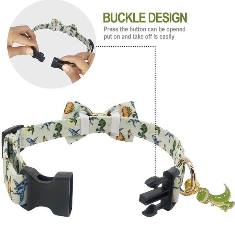 - Great Material and Cute Printed Pattern: Made with high quality and Soft cotton webbing fabric,which will be soft and comfortable to touch. Meanwhile,its 3 pattern of Dinosaur/Outer Space/Rainbow pet collars will make your pet more lovely.