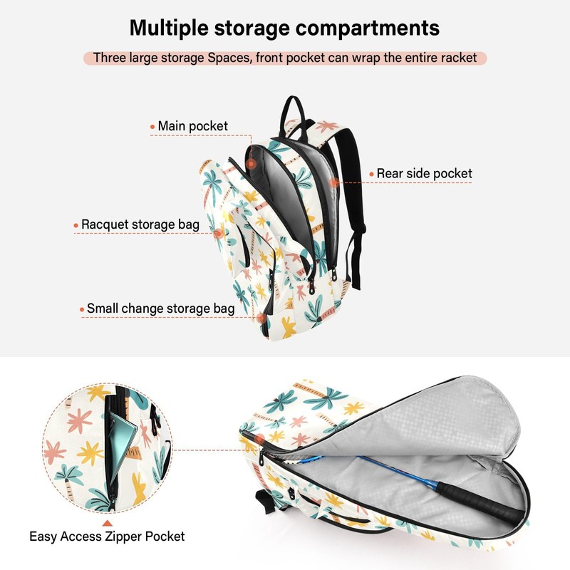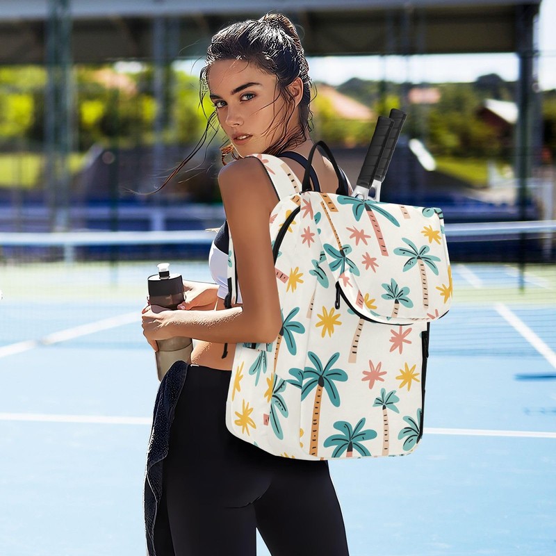 KUEJOP Tennis Backpack Palm Tree Little Flowers Pattern Gym Bags Hold Rackets