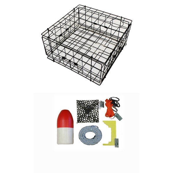KUFA Vinyl Coated Crab Trap & Accessory Kit (100' Lead CoreRope, Clipper,Harness,Bait Case & 14" Red/White Float) S60+CAC3