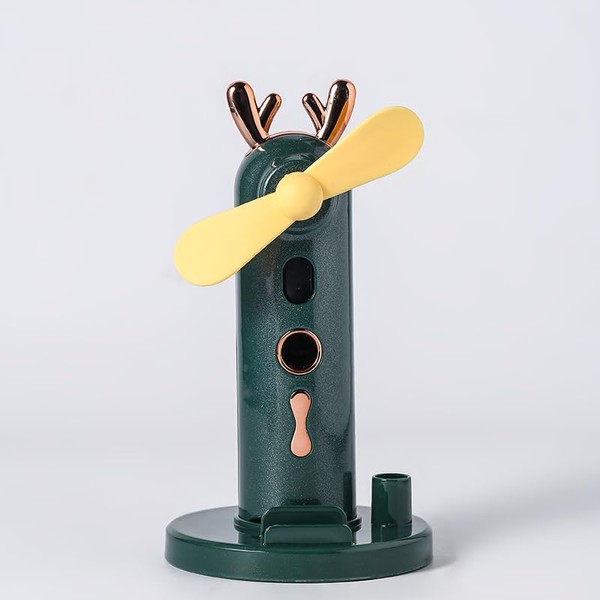 kuhegoue Mini Portable Fan, Cute Design 3 Speed Personal Handheld fan and Desktop with Base, Lightweight USB Rechargeable for Travel Makeup Spray hydration Women Summer Gift (Green Antlers)