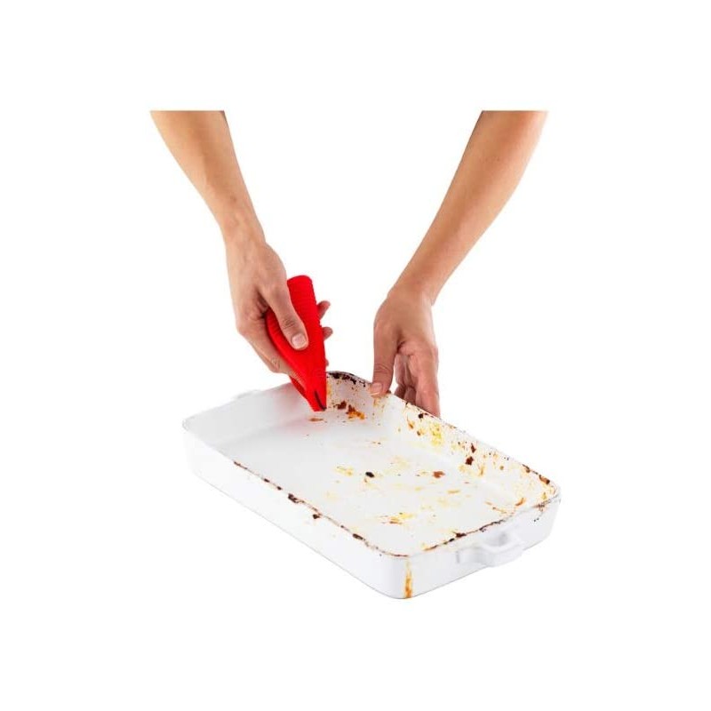 - The second side has wavy silicone ribs for tougher scrubbing jobs plus a hard nylon tip to reach extra hard-to-remove dirt and grime.